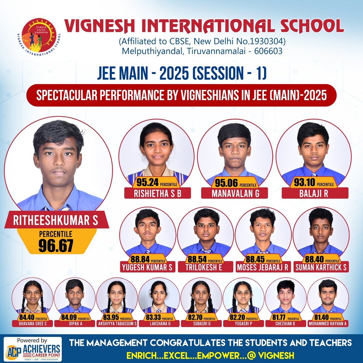 We are proud of our exemplary achievers in JEE Main-March 2025,The Management and staff congradulate the students for their supendous Performance.
