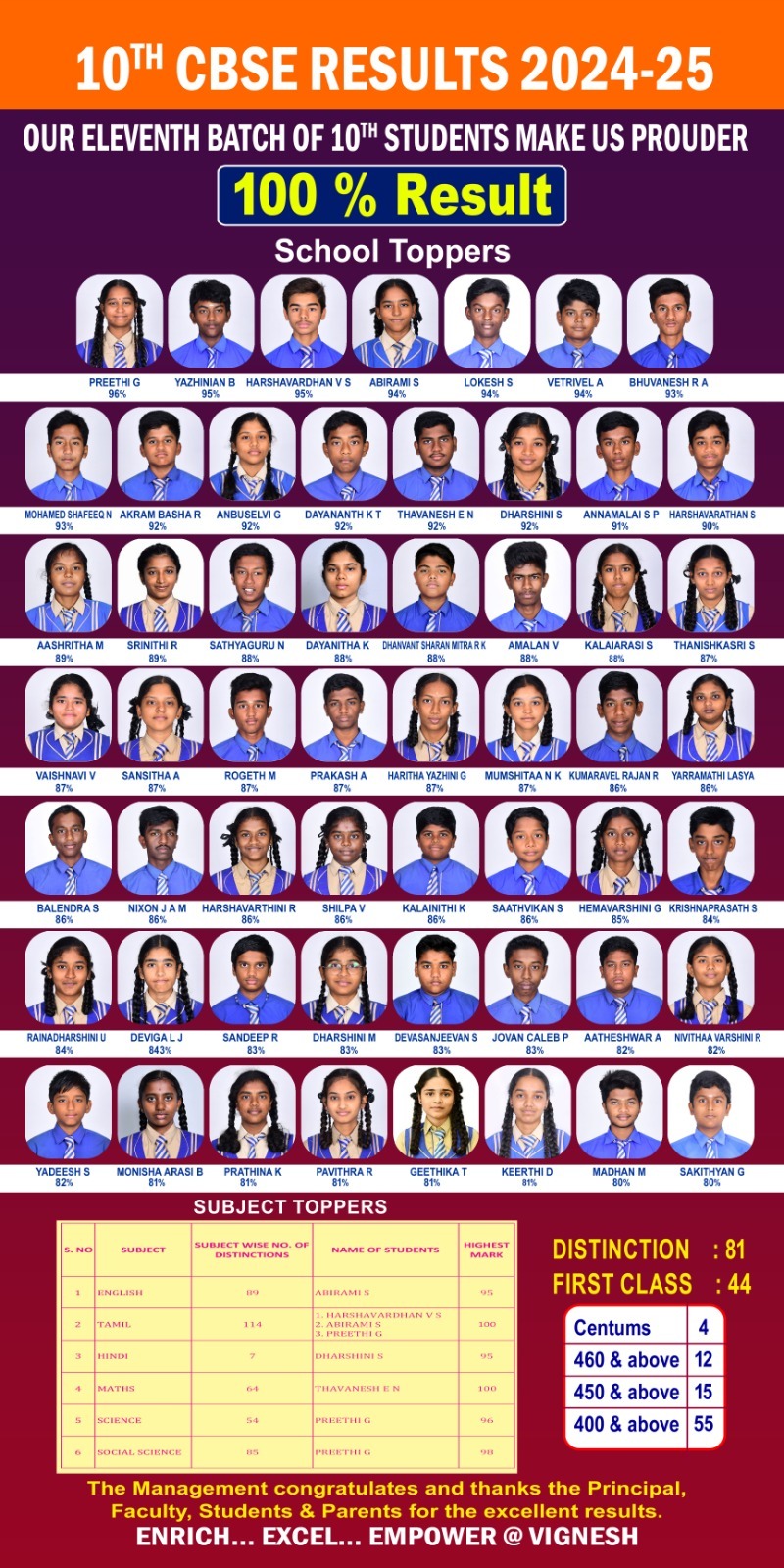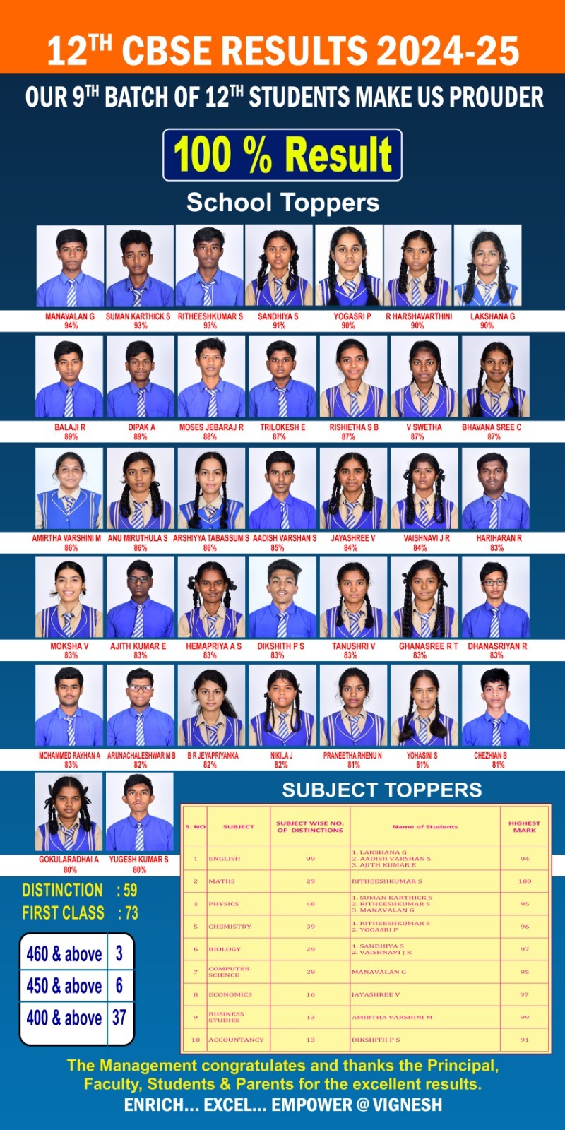 We are proud of our exemplary achievers in JEE Main-March 2025,The Management and staff congradulate the students for their supendous Performance.